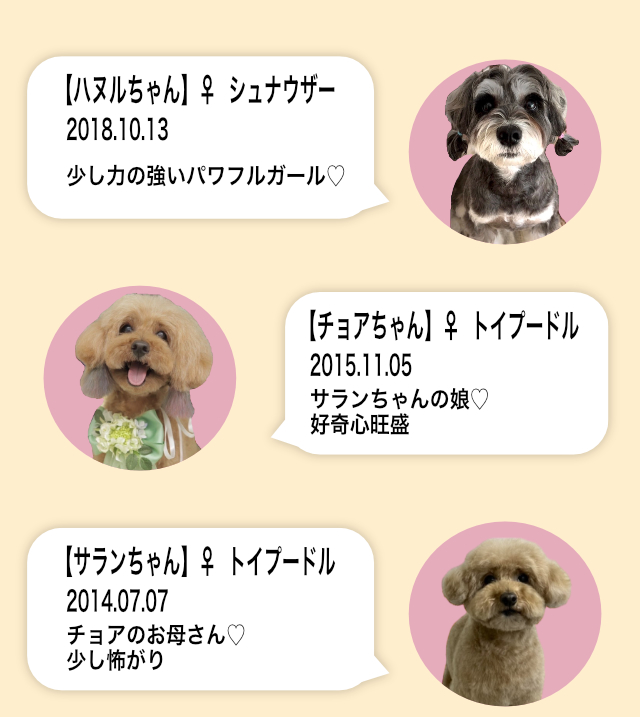 勉強会に参加したり、日々トリミングに関する勉強をしながら子育ても奮闘中!『優しく丁寧』をモットーに日々トリミングさせて頂いております。